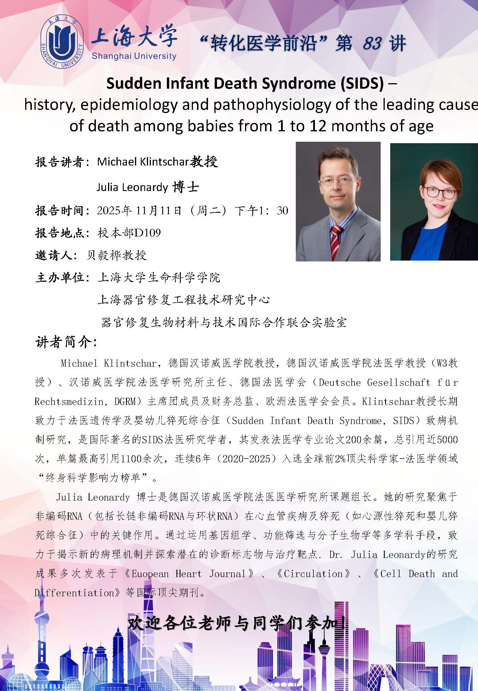 | 报告人 | Michael Klintschar教授、Julia Leonardy 博士 | 报告时间 | 2025年 11月11日(周二)13:30 |