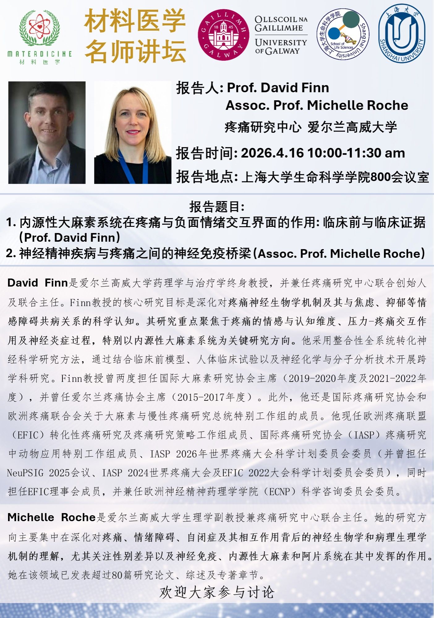 | 报告人 | David Finn 教授 | 报告时间 | 2026年4月16日(星期四)10:00 |